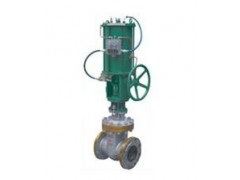 4、气缸盖上部装有气动-手动转换装置。将转换手柄顺时针方向提转到“气动”定位孔定位,闸阀处于气动操作状态;反之,将转换手柄逆时针方向提转到“手动”定于孔处定位,闸阀即可进行手动操作。带锥齿轮的手柄转换方向相反。 手动操作闸阀时,手轮旋向和普通手动阀一样,即顺时针转为关,逆时针转为开。带锥齿轮转动的相反。