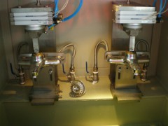 本检测设备可检测各种陶瓷阀芯寿命,在设计结构上参照卫浴行业中的国标及欧美各执行标准,尽可能地提高设备的冗余能力,在功能上满足多种类型,多种标准的卫浴产品测试。根据国家GB18145- 2003,JG/T3040-1997,同时参照ASM.ISA以及欧洲相关标准,自动化控制运动状态的各项数据由触摸屏直接读出,可随时打印画面测试数据,测试数据准确率100%,动作平稳,被测产品装夹及拆装简单方便等。实现效益的最大化和最大效益的持久及稳定是每个健康企业的经营目标。以具有竞争力的价格提供高产品的质量就是一种有效方法,这就要求经济有效地使用各种企业所拥有的资源。阀芯测试的经济有效性意味着,以###成本和代价,实现使用各种标准对各种阀类进行测试 不仅如此,最理想的是也实现对同阀类但不同制造商的阀门都可进行测试。只有100%的检测才能确保每一只阀芯的可靠质量