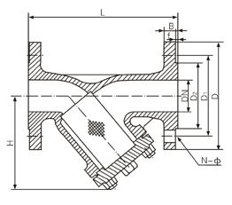 渤工阀门厂专业生产的【YG45H德标Y型过滤器】是输送介质管道上不可缺少的一种装置,通常安装在减压阀、泄压阀、定水位阀或其它设备的进口端,用来消除介质中的杂质,以保护阀门及设备的正常使用。当流体进入置有一定规格滤网的滤筒后,其杂质被阻挡,而清洁的滤液则由过滤器出口排出,当需要清洗时,只要将可拆卸的滤筒取出,处理后重新装入即可,因此,使用维护极为方便。