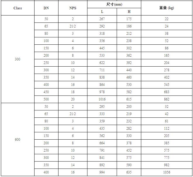 注:阀门连接法兰及对焊端尺寸可根据用户要求设计制造。