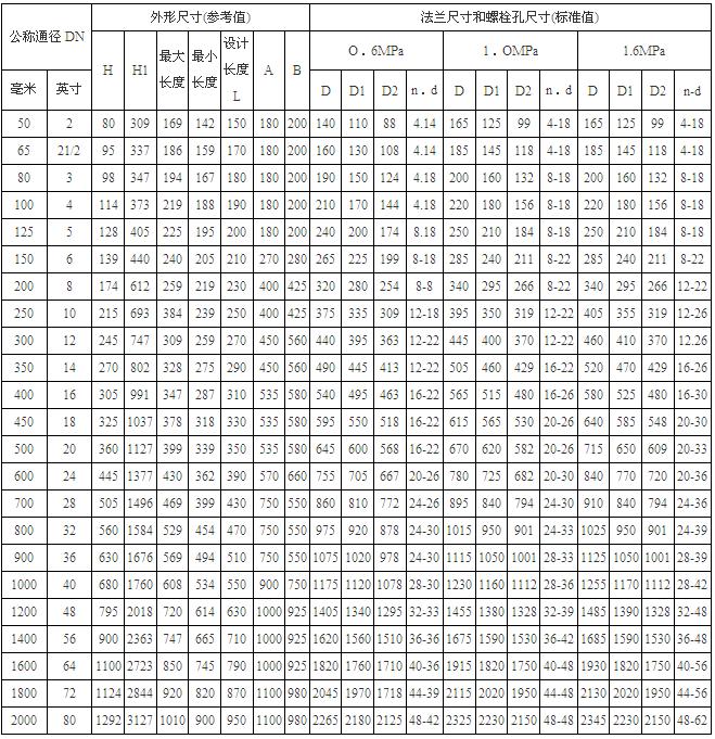 2、伸缩蝶阀出厂时结构长度为最小长度,安装时,拉至安装长度(即设计长度)。