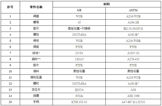 注:*抗硫型阀门该零件的材质为GB(12Crl8Ni9+Ni.P)、ASTM(Al82-304+Ni.P)