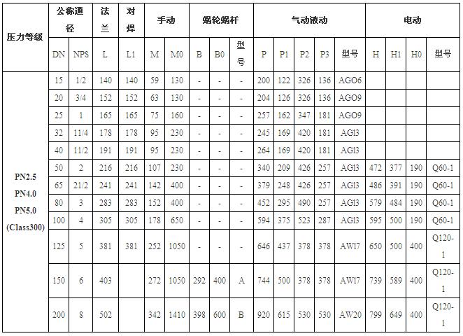 注:阀门连接法兰及对焊端尺寸可根据用户要求设计制造。
