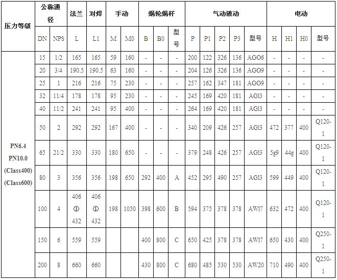 ① 406为PN6.4MPa、Class400尺寸;432为PNIO.OMPa、Class600尺寸。