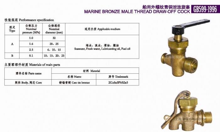 船用外螺纹青铜泄放旋塞阀GB/T599-96
