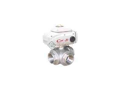 Q914F/Q915F型电动三通内螺纹球阀是综合国内外先进技术而开发的新型三通切换型调节阀。标准球芯有L型三通双口孔种,改变球芯与管道的相对角度,可以对三支管道流体实现不同的组合控制;T型孔道可起配比作用,适用于液体、气体、蒸汽等介质的配比调节与控制。电动三通球阀采用CH型、3610R型或ESQ型回转式角行程电动执行机构,以AC220V、AC380V或DC24V电源电压作动力,接受工业自动化仪表控制系统输入的(4-20mA、或1-5VDC)电流信号或电压信号,即可控制运转,实现对工艺介质的比例调节或二位切换控制。气动三通球阀由GT型、DA型、AW型气动活塞式双作用或单作用(弹簧复位式)执行机构组成,有比例调节型(采用电-气阀门定位器,以电信号和压缩空气为动力,接受控制系统输入的0-10mA DC或4-20mA DC电流信号,改变球芯的旋转角度,可实现比例调节动作)。二位切换型(采用电磁换向阀、阀位回讯器,以AC220V或DC24V电源电压和压缩空气作动力,实现对流体介质的快速切换控制)。