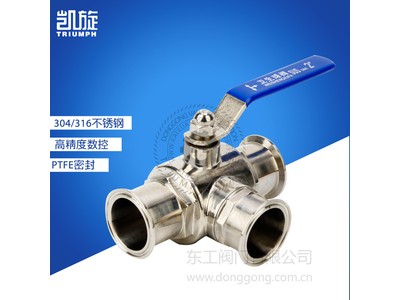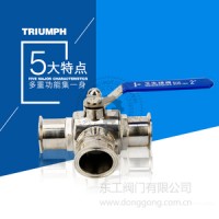 气动卫生级三通T型球阀的阀体采用304/316L不锈钢刚件均采用不锈钢制作,使用性能佳,使用寿命长,阀座采用采用聚四氟乙烯弹性材料制造,密封性能好;PTFE有良好的自润滑性,与阀体球体阀杆的摩擦磨损小,大大提高球阀的使用寿命。产品经过高精度数控车床精车阀体,大大减少了摩擦力,开启灵活轻松,通过食品橡胶,更是让产品的卫生质量提高。