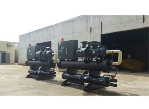 ⊙本冷水机组除了采用双螺杆压缩机外还配备了可清洗的高效换热器,此款换热器冷凝器部分采用经强化的换热管(外翅片内肋化),账接在管板上,水侧设计压力为10bar,制冷剂侧设计压力25bar,并配有安全阀,确保设备的安全性。