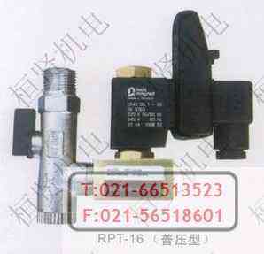 RPT-16电子排水阀 RYZDH牌RPT-16A电子排水阀以模拟电路固态电子定时器与电磁阀相匹配,实现压 缩空气系统冷凝水的定时自动排放。 RPT-16A型电子排水阀广泛应用于过滤器,分离器,干燥机,储气罐,滴水脚等压 缩空...