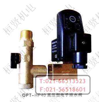 OPT-HP40高压型电子排水阀 概述: OPT-HP40高压型电子排水阀以模拟电路固态电子定时器与电磁阀相匹配,实现 压缩空气系统冷凝水的定时自动排放。 OPT-HP40高压型电子排水阀广泛应用于过滤器、分离器、干燥机、储...