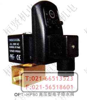 OPT-HP80高压型电子排水阀 概述: OPT-HP80高压型电子排水阀以模拟电路固态电子定时器与电磁阀相匹配,实现 压缩空气系统冷凝水的定时自动排放。 OPT-HP80高压型电子排水阀广泛应用于过滤器、分离器、干燥机、储...