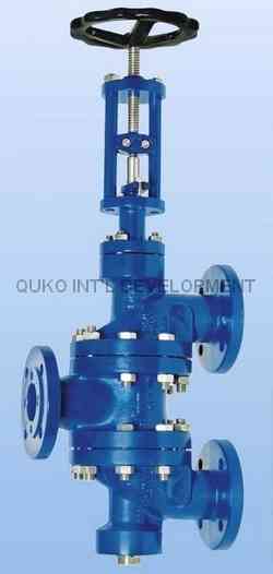 三通转换阀 11.7型带压盖填料的三通转换阀 法兰可按EN1092-1或ASME B16.5法兰标准生产。可提供1.0619(WCB)碳钢、1.4408(CF8M)不锈钢以及1.1138(LCB)低温钢三种材质。 11.8型带波纹管的三通转换阀 法兰可按...